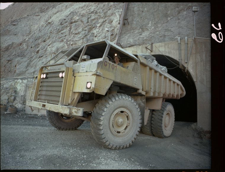 320389PD: Truck hauling ore out of Teutonic Bore mine, 1983