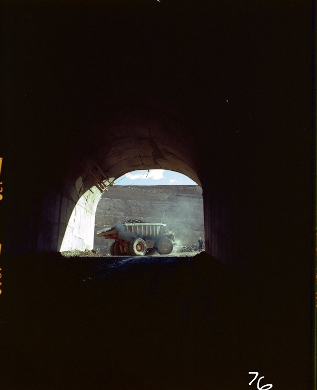 320394PD: Truck hauling ore out of Teutonic Bore mine, 1983