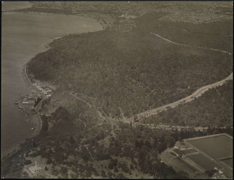 Aerial photograph of the Swan Brewery and Kings Park c1920
