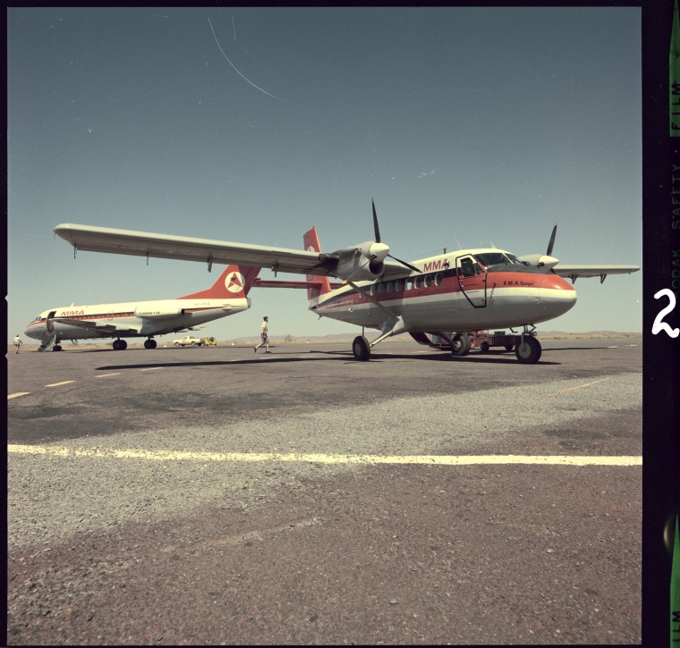 326757PD: VH-MMY (RMA Yampi) foreground and VH-FKA (RMA Pilbara II) at Port Hedland, 1968?