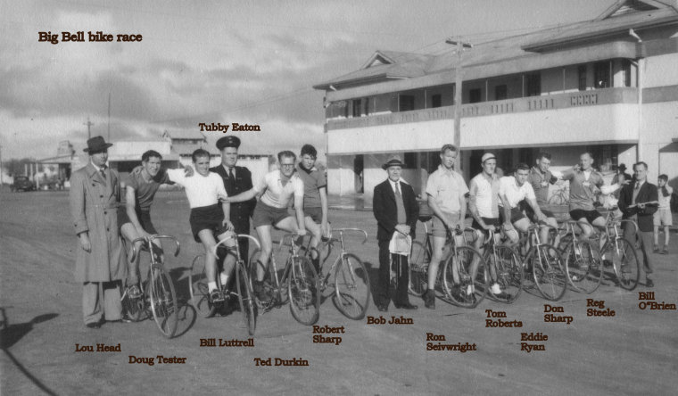 BA2227/166: Big Bell bike race. (N.B. Man on far left is not Doug Tester but Leslie Richard Oliver)