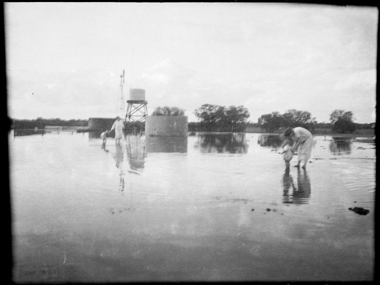 BA2271/62: Marloo Station after rain in January 1928 with person in foreground