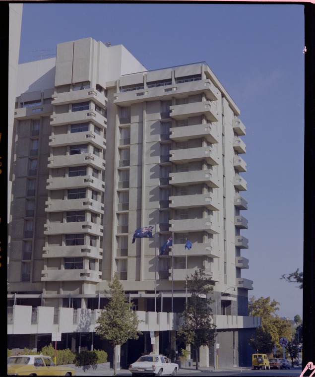 322350PD: Parmelia Hilton Hotel, Perth, Mill Street entrance, 29 April 1981