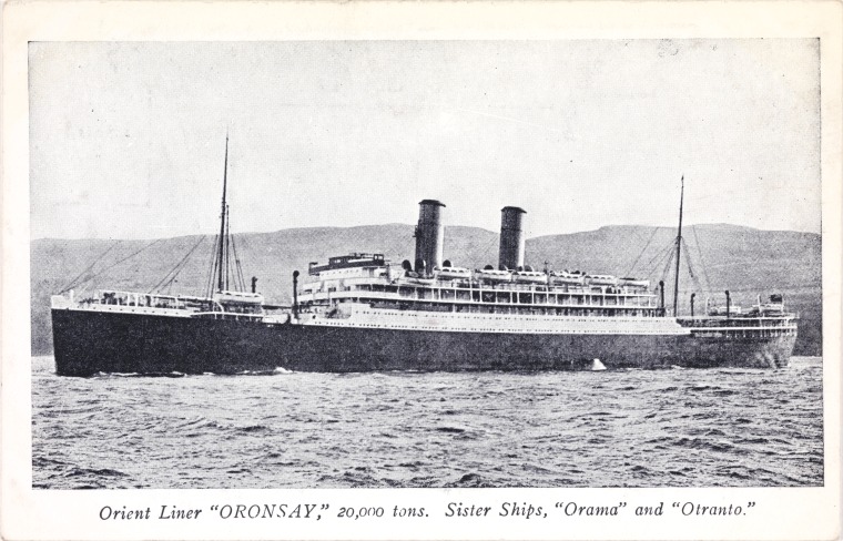 Orient liner, Oronsay. Sister ships, Orama and Otranto