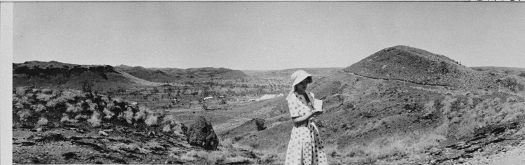 027158PD: Thought to be Mrs Hope Hancock holding asbestos at Nanyerry, ca. 1950