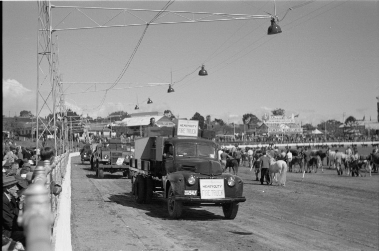 128506PD: Forests Dept. fire truck on parade at the Perth Royal Show, October 1947