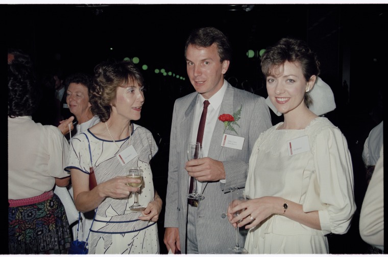 370075PD: L-R: Pipa Greenwood, Andrew Shearwood, Judy Shearwood. Opening of the Images of the Australian West exhibition by Mark Lang at the State Library of Western Australia, 21 November 1986