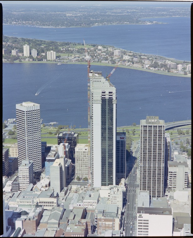 324630PD: Perth CBD, 10 August 1987. The R&I Bank Tower under construction
