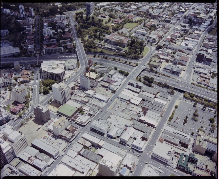 324744PD: Western end of Perth CBD between St George's Tce (left) and Murray Street, January 1988