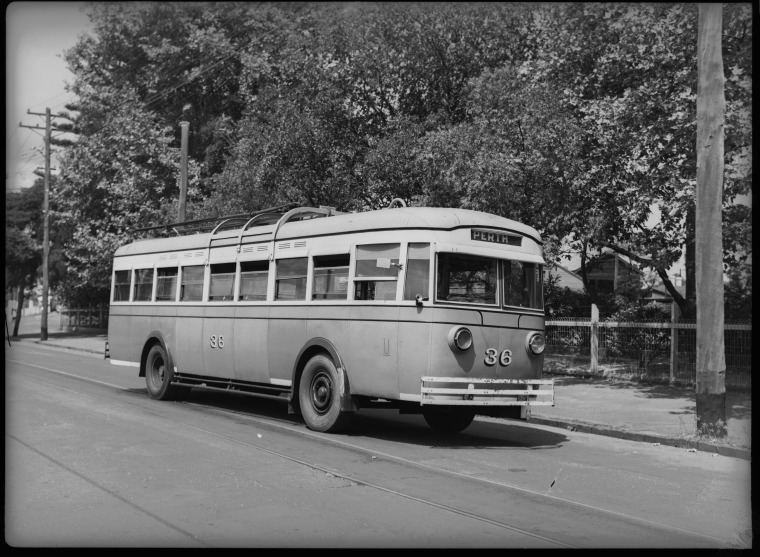 217674PD: Canton type trolley bus J36, Perth, ca. 1950