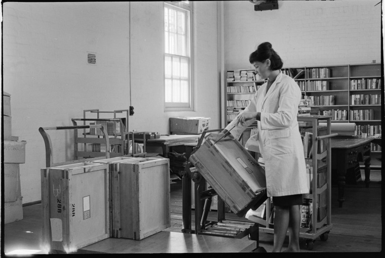 319406PD: Packing books for public libraries in the Circulation Section, Library Service of W.A., 1961