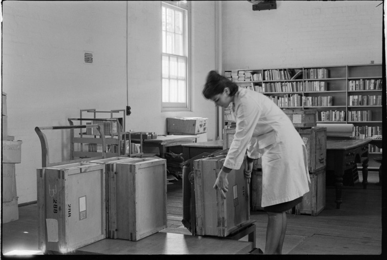 319407PD: Packing books for public libraries in the Circulation Section, Library Service of W.A., 1961