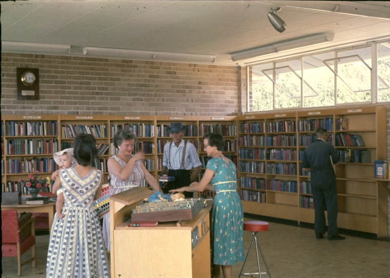 231981PD: Kwinana Public Library, 23 February 1960. Patricia Morris behind the loans counter