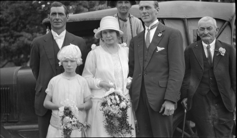 304947PD: Bride Sylvia Jennings nee Vickery with groom Fred Jennings and family members, 1927
