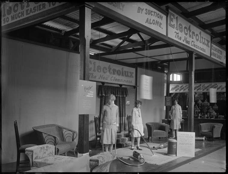 100103PD: Young women demonstrate Electrolux vacuum cleaners at the Perth Royal Show, 1926