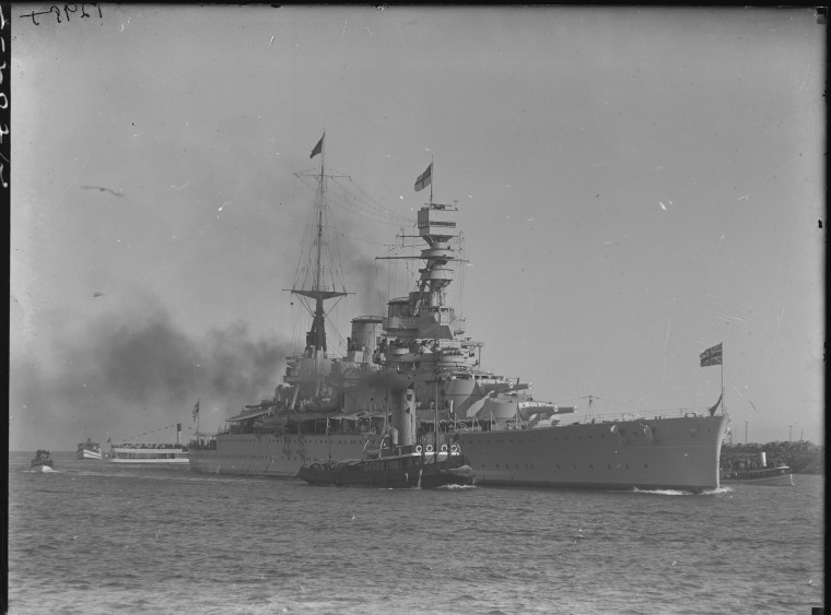 032158PD: HMS Renown arriving at Fremantle carrying the Duke and Duchess of York, 18 May 1927