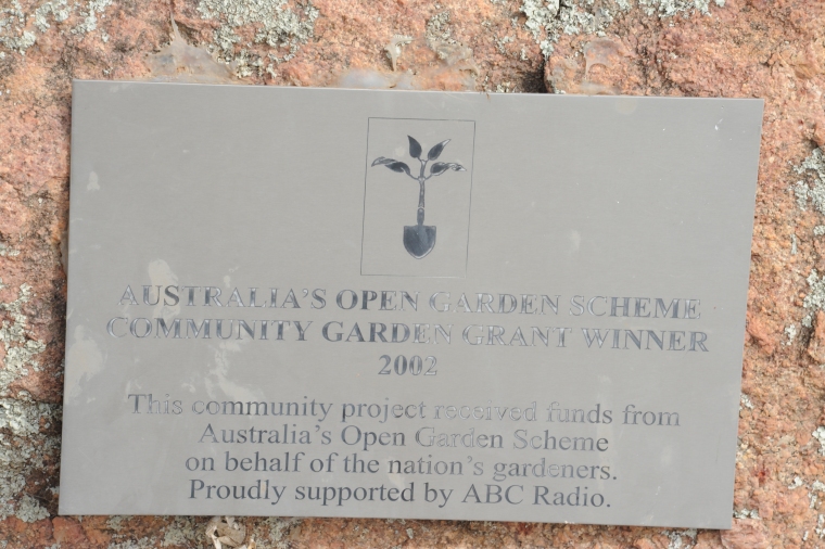 BA2500/WASL 3526: Plaque for Australia's Open Garden Scheme Community Garden Grant Winner 2002, Merredin, 8 April 2012