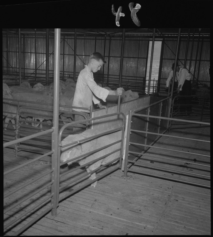 118069PD: Drafting sheep in the shearing shed at Bindoon Boys' Town, 31 March 1966