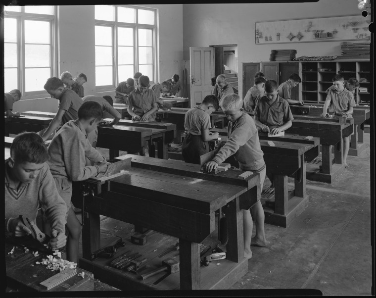 114692PD: Woodwork class at Bindoon Boys' Town, 31 March 1966