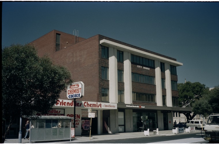 313296PD: City House and a Friendlies Chemist, 1-7 Adelaide St, Fremantle, April 1984