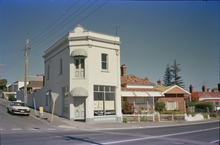 314148PD: Ray Fuller Estate Agents and a house, 51-55 Canning Highway, East Fremantle, June 1986