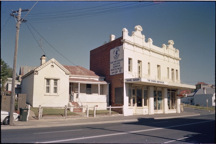 314447PD: A house and The Divers Emporium, Dive Shop at 35 Canning Highway (corner of Glyde St), East Fremantle, June 1986