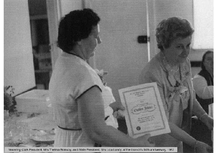 YRC13: CWA President, Mrs Thelma Bransby & State President Mrs Lola Lundy at the 50th anniversary, 1982