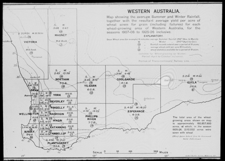 207159PD: Map relating to the Goldfields Water Supply scheme. Western Australia : map showing the average summer and winter rainfall, 1927.