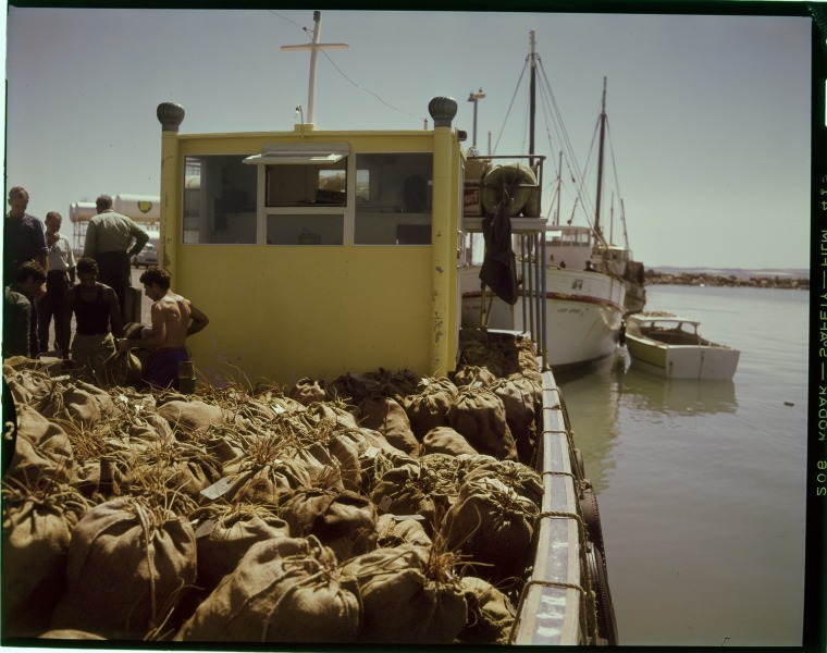 228010PD: Unloading western rock lobsters at Geraldton Harbour, ca. 1962.