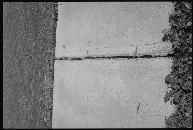 244129PD: Close-up view of concrete footpath, possibly in Faulkner Park, 1972?