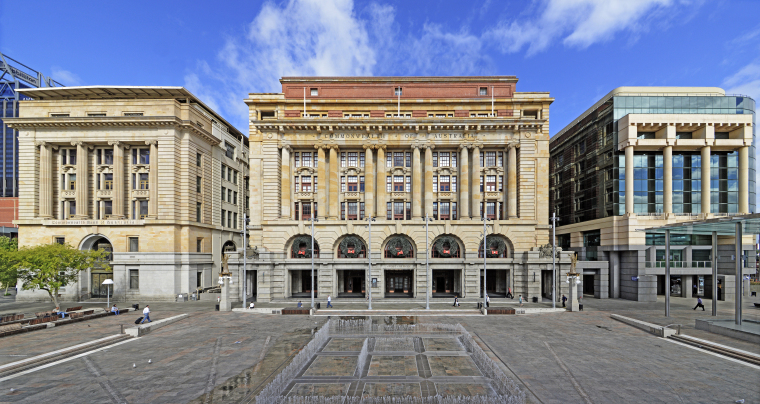 Perth Post Office and adjoining buildings, Forrest Place viewed looking West from Forrest Chase Balcony 29th Nov 2013