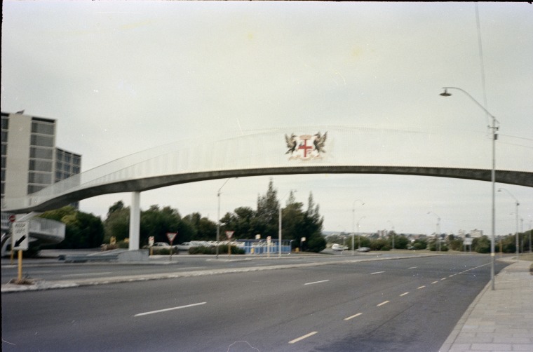 312230PD: Footbridge over Adelaide Tce, East Perth, May 1983