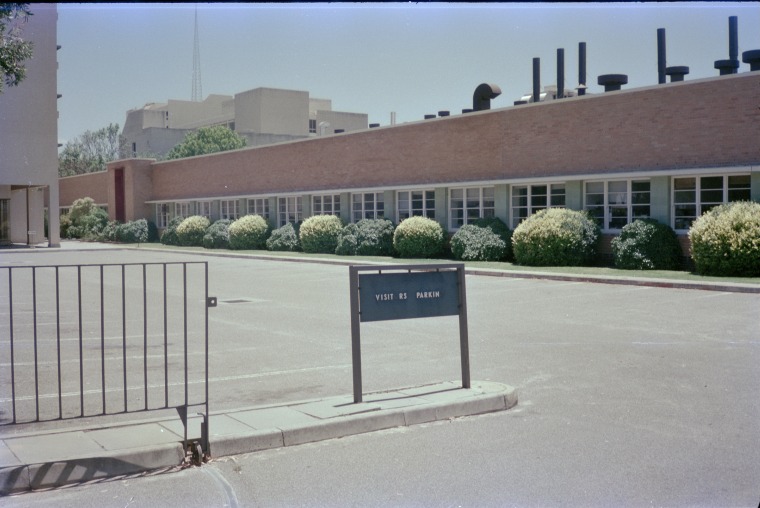 311925PD: Government Chemical Laboratories view from Adelaide Tce, Perth, November 1983. Entrance is in Plain St