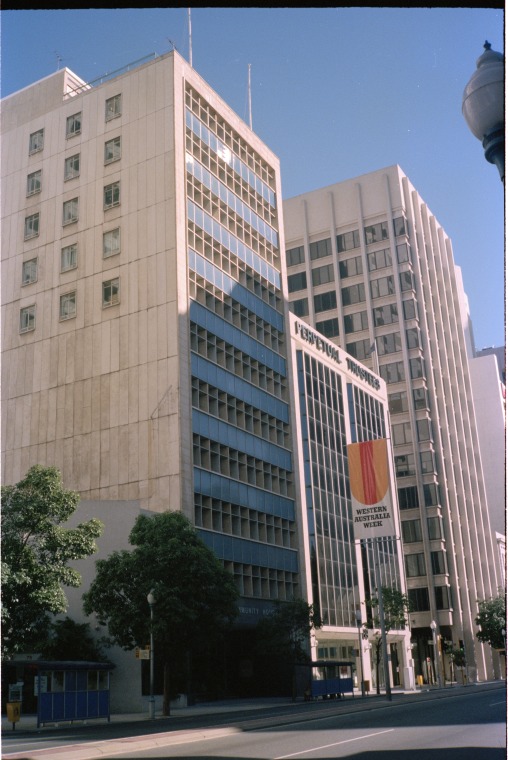 311451PD: L-R: Community House (no. 81), Perpetual Trustees (no. 89) and Prudential Trustees (no. 99), June 1982