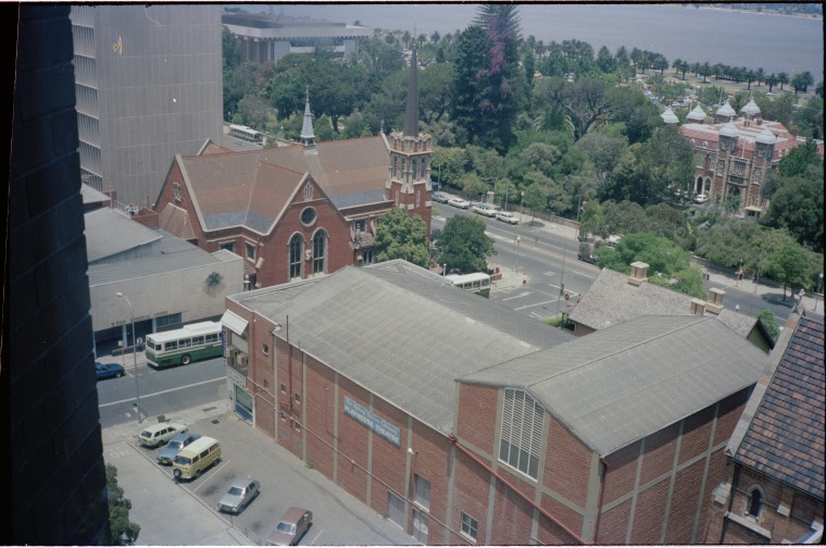 311096PD: View over the Playhouse Theatre, Perth, December 1981. Taken from 8th floor of Public Trust Building
