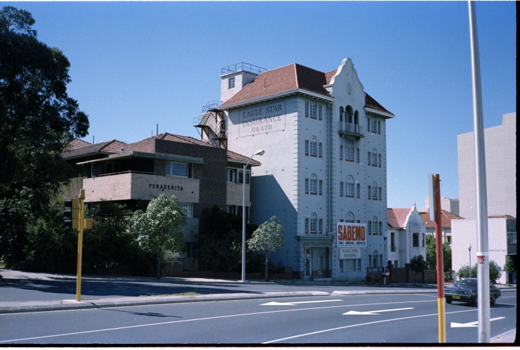 311205PD: Peradeniya flats (no. 262) and the Eagle Star Building (no. 260), April 1981