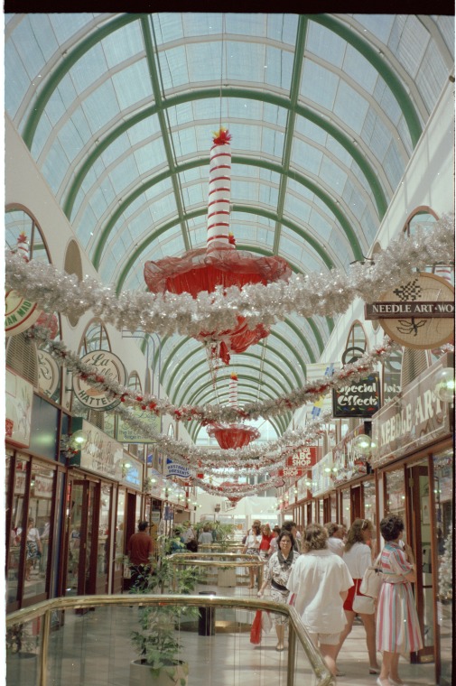316423PD: Christmas decorations in the Carillon Centre, Perth, January 1989