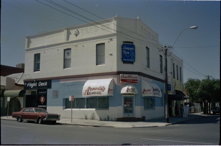 312938PD: The Flight Deck Adult Cinema, Arnold's All Night Cafe and the Champagne Room (formerly Club 27) corner James and Lake Streets, Northbridge, January 1984