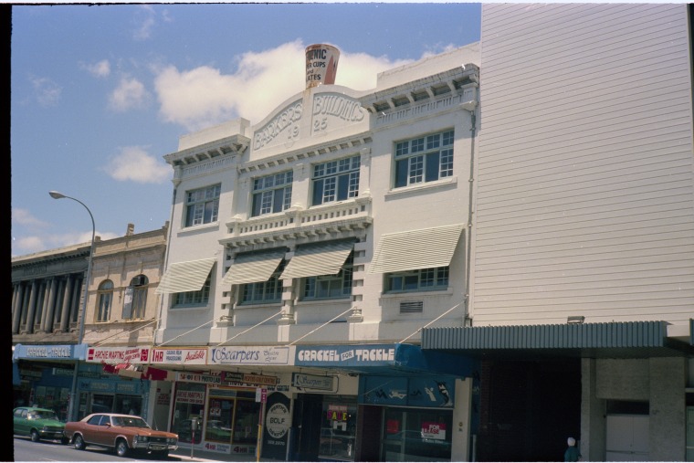 311736PD: Barkers Buildings, premises of Spot-On Photo Lab, Perth's Golf Centre, Scarpers and Crackel for Tackle, 120 William Street, Perth, December 1982