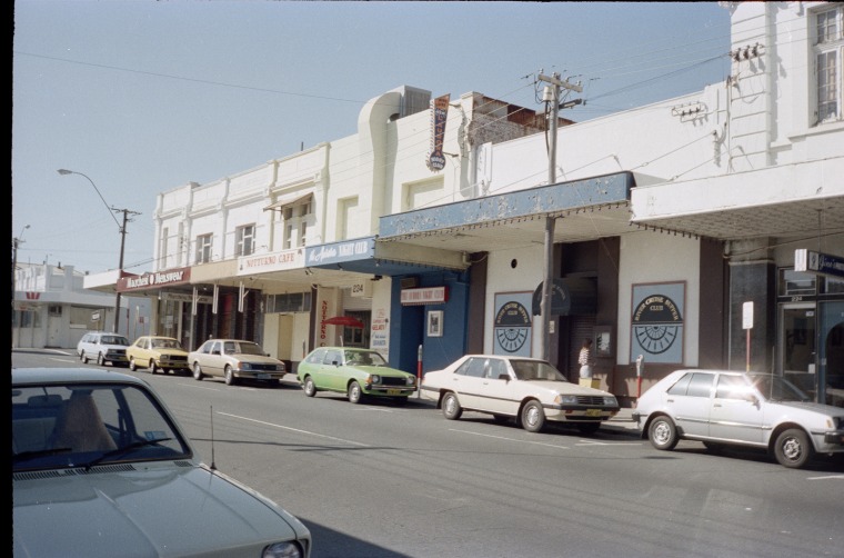 312207PD: L-R: Francis Street, Marchesi Menswear, Notturno Cafe, The Aurora Night Club, River Cruise Supper Club, 230-238 William Street, Perth, May 1983