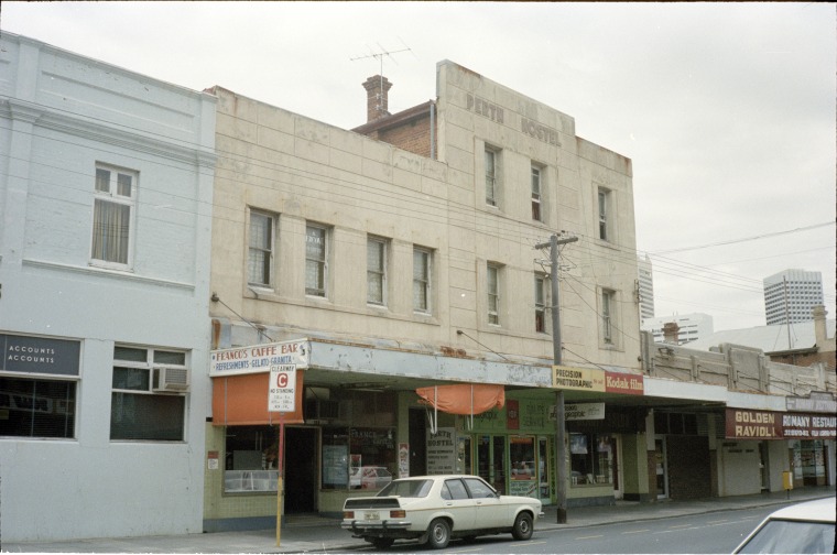311292PD: Perth Hostel, Franco's Coffee Bar, Precision Photographic, Golden Ravioli, 192-204 William Street, Perth, January 1982
