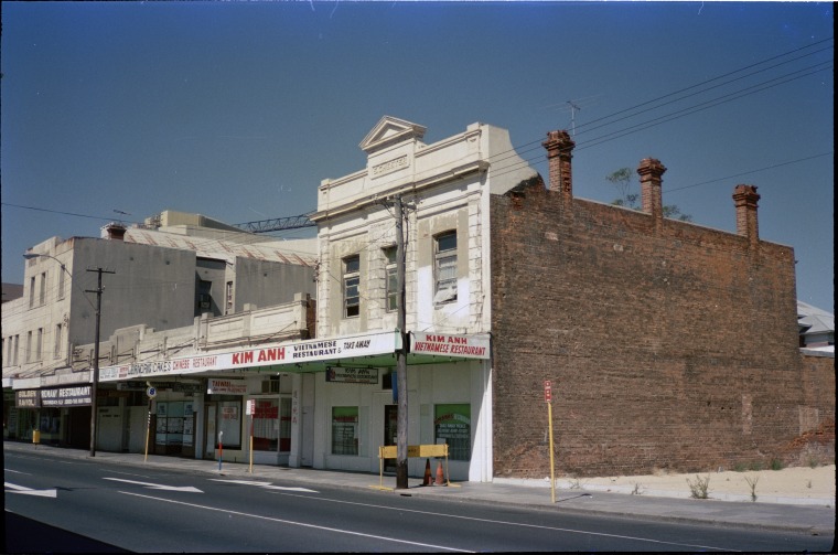 312907PD: Kim Anh Vietnamese Restaurant, Leandris Cakes, Romany Restaurant, Golden Ravioli, Perth Hostel, 178-196 William Street, Perth, January 1984