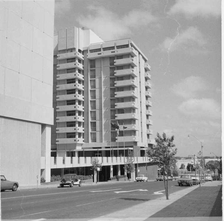 319113PD: The Parmelia Hilton Hotel, Mill Street, Perth, March 1973