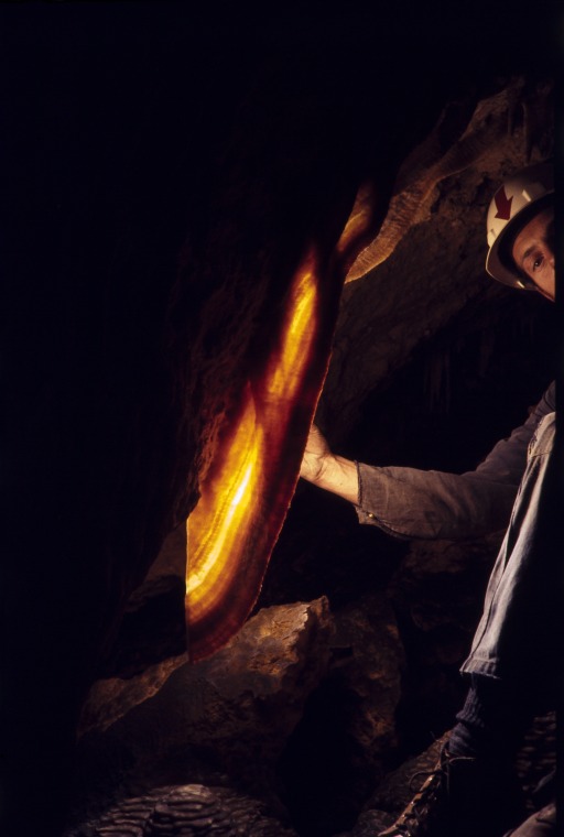 133323PD: Shawl formations, photographed with lens left open and flash manually triggered, Quandong cave, Nambung National Park, 1971.