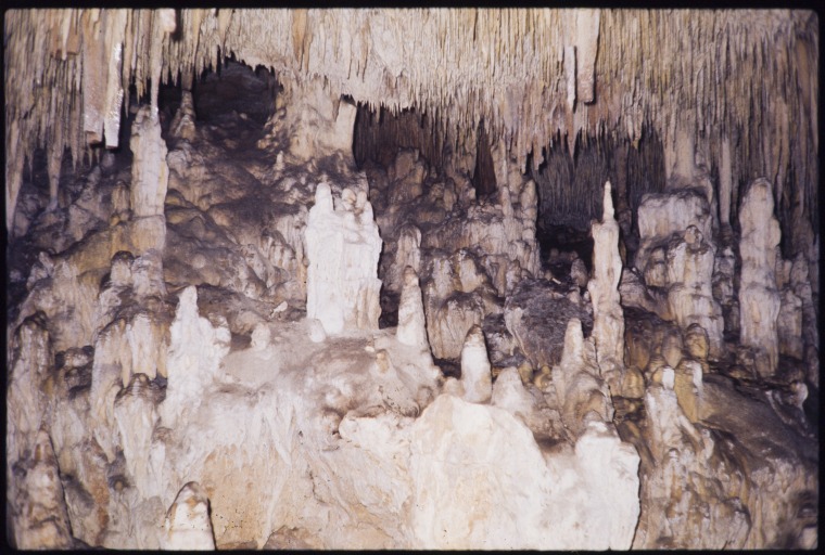 133316PD: Stalagmites, Quandong cave, Nambung National Park, 1971.