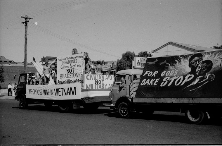380477PD: Anti-Vietnam War protesters on Newcastle Street, Northbridge, December 1973.