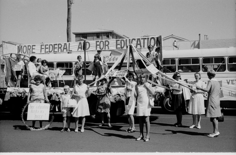 380479PD: Education funding advocates on Newcastle Street, Northbridge, December 1973.