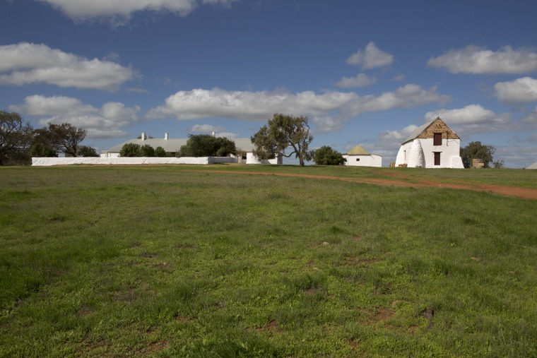 BA2493/368: Oakabella Homestead, 16 May 2014. The house (at left), kitchen building (centre) and the barn