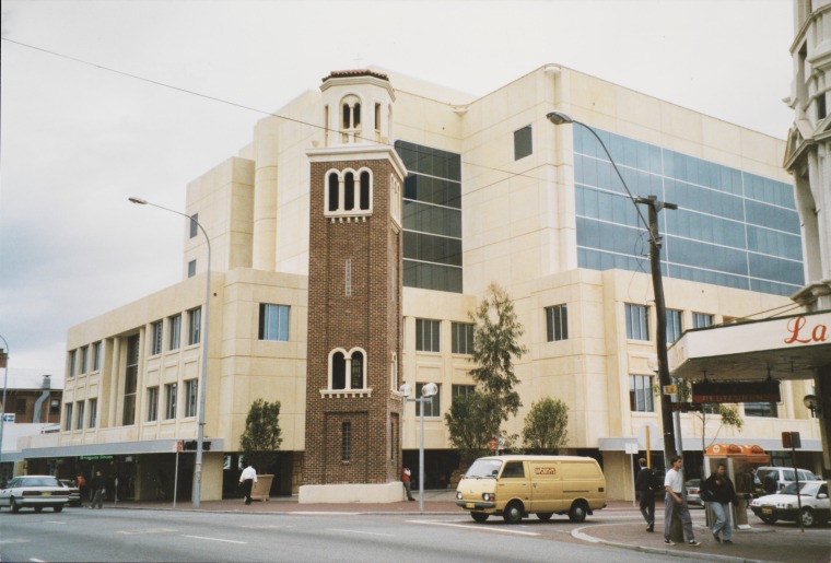 BA1530/5877: Loreto Bell Tower and Australian Taxation Office, Northbridge, August 1992.