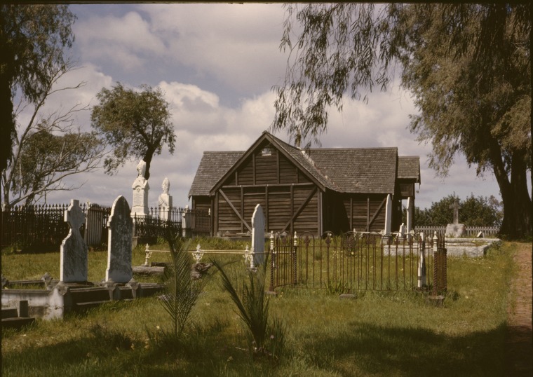 136128PD: St. Mark's Anglican Church (the Old Picton Church) and churchyard, near Bunbury, ca. 1955